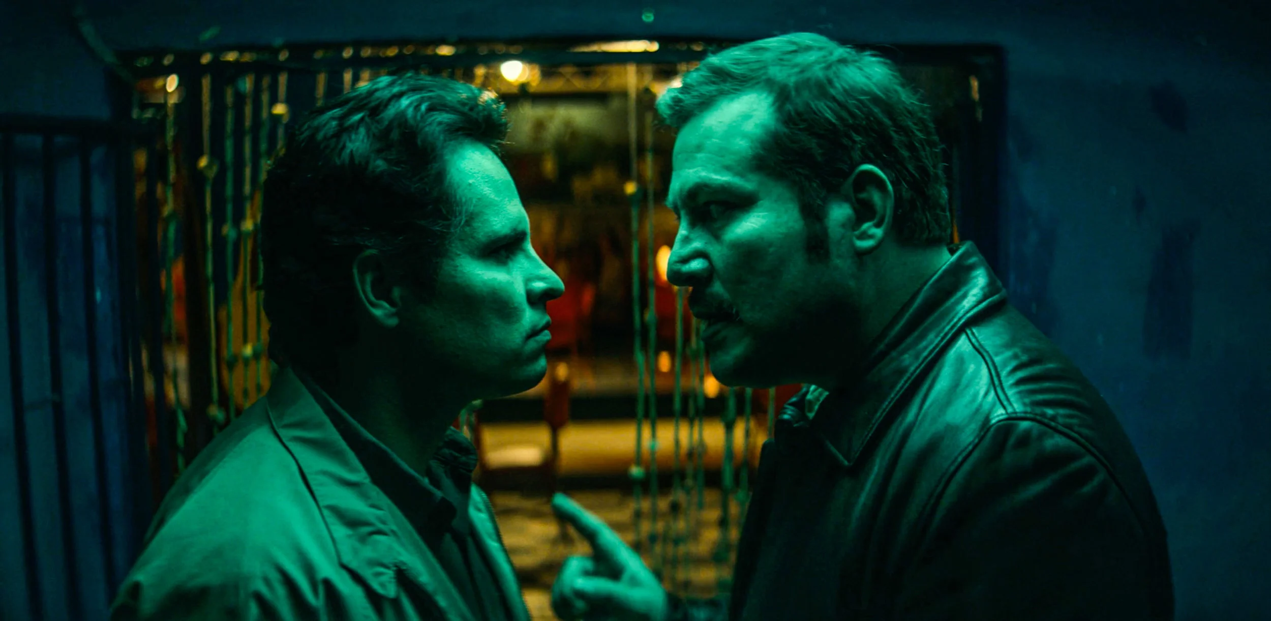 Michael Peña as Kiki Camarena and Julio César Cedillo as Comandante Guillermo Calderoni. Meeting with an informant.