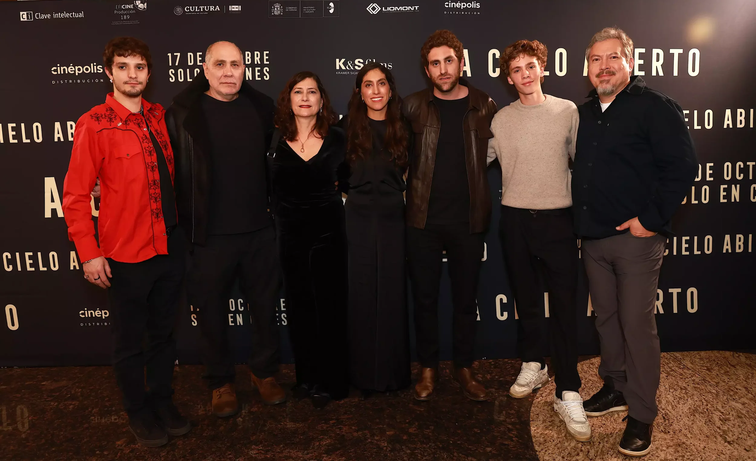 At the premiere of A Cielo Abierto in Mexico City. Left to Right: Máximo Hollander, Guillermo Arriaga, Eugenia Arriaga, Mariana Arriaga, Santiago Arriaga, Theo Goldin and Julio César Cedillo.